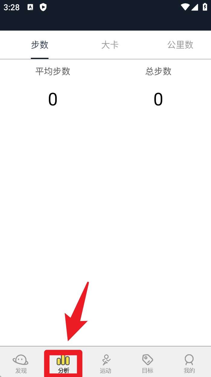 2、点击底部“分析”标签,可查看平均步数、总步数及相关运动数据统计,方便了解日常活动情况。