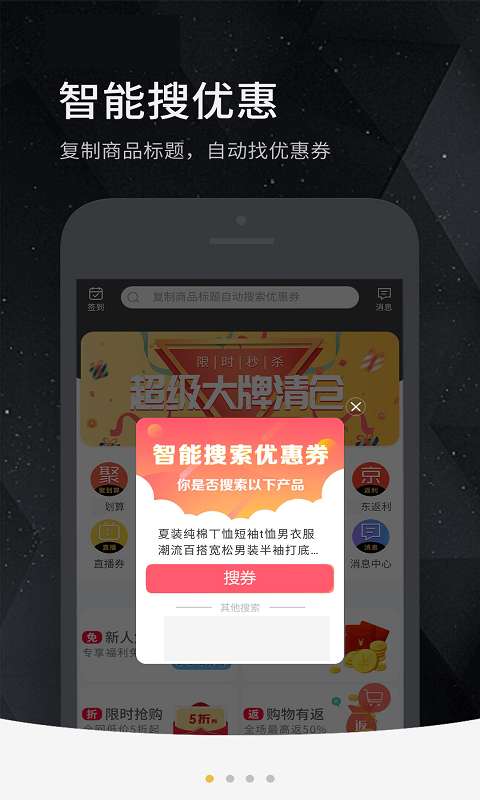 2、通过简单的搜索功能,用户可以快速找到所需品类的优惠券,掌握各种折扣信息,享受更多的省钱和获得折扣的机会。