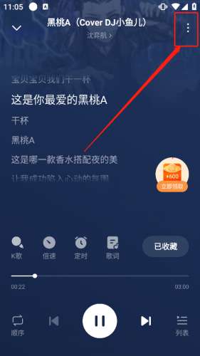2、进入音乐详细界面,点击右上方“更多”即可点击下载。
