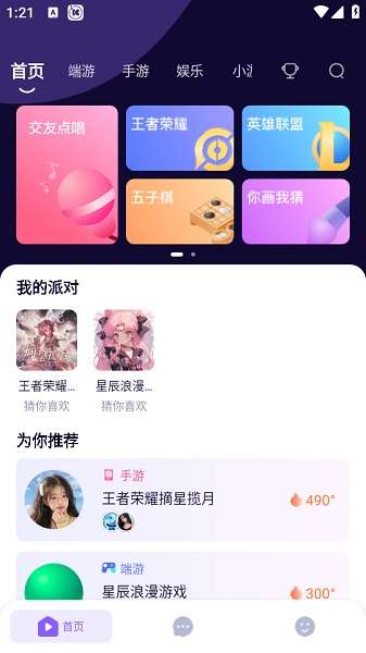 1、在本站下载哈哈喵开黑app,打开软件首页。