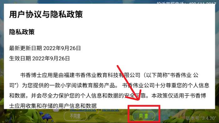 1、打开软件后,首先完整阅读用户协议,若无疑义,选择同意。