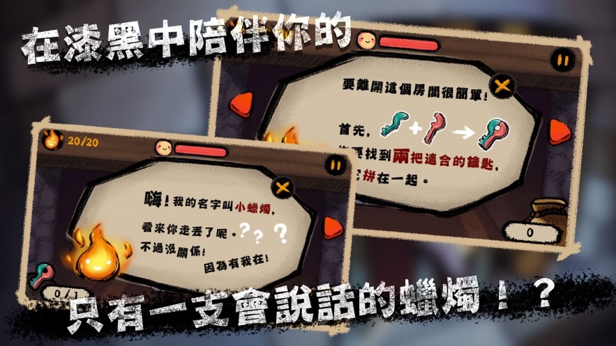 1、你会遇到很多奇奇怪怪的物品,能说话的小蜡烛,能够和你进行交谈的大门等等。