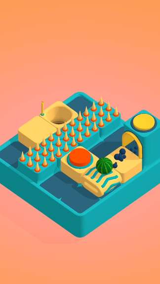 烧脑球球那款游戏中,大家要控制的,只是一个圆球,通过点击不同的机关,让他能够最终到达旗帜所在的洞口,注意了,整体的通道有很多障碍,以及一些尖刺状的物体,需要控制机关,才能让这些障碍物不再伤害你的圆球。在这里完成挑战之后,大家还有机会去更换新的圆角皮肤,比方说水果的外观或者是带有其它斑点特色的圆球外形。