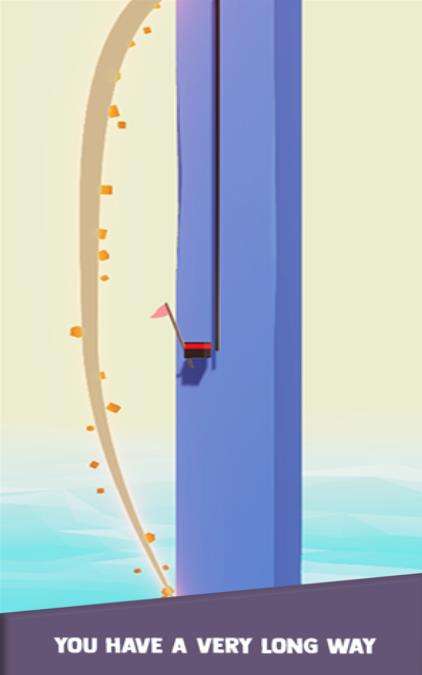 攀登英雄3D这款游戏里大家参与的则是攀登的挑战,这里面会有一个小型的角色,请为大家利用手中的物品控制她去完成爬山,或者是翻越高处的挑战。他的手上拿着一个旗子,这是要把它插在终点作为标志。一显示着自己当前挑战完成成功。首先大家要准备好绳子,然后点击一下屏幕,绳子就会被你扔出去,然后抓住双子不断的向上攀爬,直到到达顶峰,然后就可以把自己手中的旗帜插上。