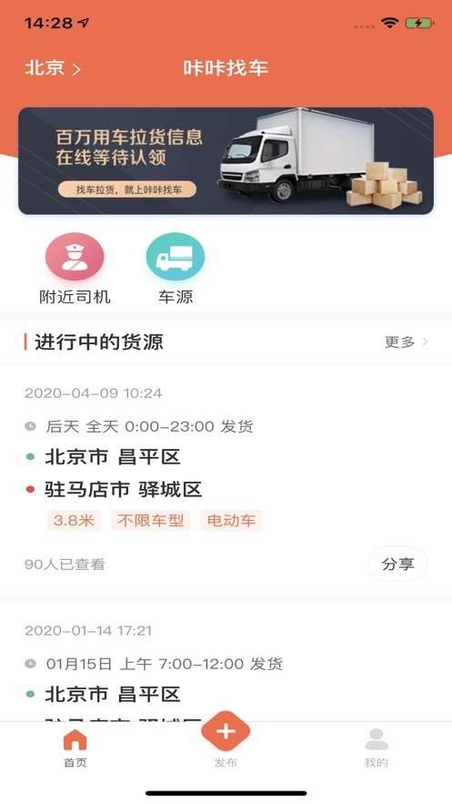 2.在同一个城市找车拉货,长途货运,在线司机,多种型号,等你选择。