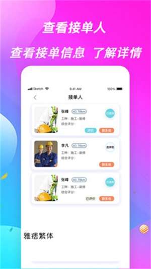 在这款师傅来了软件中,你可以得到全方位的服务信息。包括你们家的装修你们家的家政服务等等。水电什么的都可以在这里找到师傅帮你维修,而且还有保证一个小时内迅速到达现场的保证非常适合紧急情况出现的时候进行缓解修复。喜欢就赶紧下载吧。