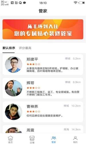 1.一店一管家,一对一定务。设计师、施工队等全城专业领域人才可直接按需对接服务。