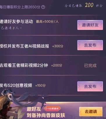 3、积分的要求还是很大的,只要你能够去达到14000的积分就是可以去兑换刘备的皮肤,7000分兑换孙尚香。