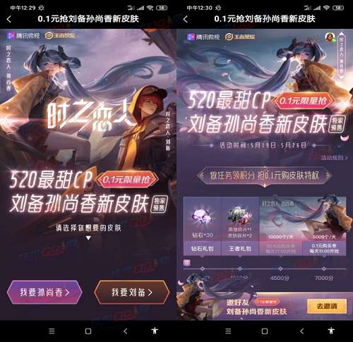 王者荣耀0.1元520皮肤地址官方最新版是一款很有趣的游戏,在这款游戏中有了最新的互动是根据520所出的孙尚香和刘备的皮肤,这个活动是限量领取的,这样的话就是不需要花费很多的钱,如果你想要这款游戏的话是可以来看看的,下面的话就会有介绍你是可以看的,这是限量的哦。