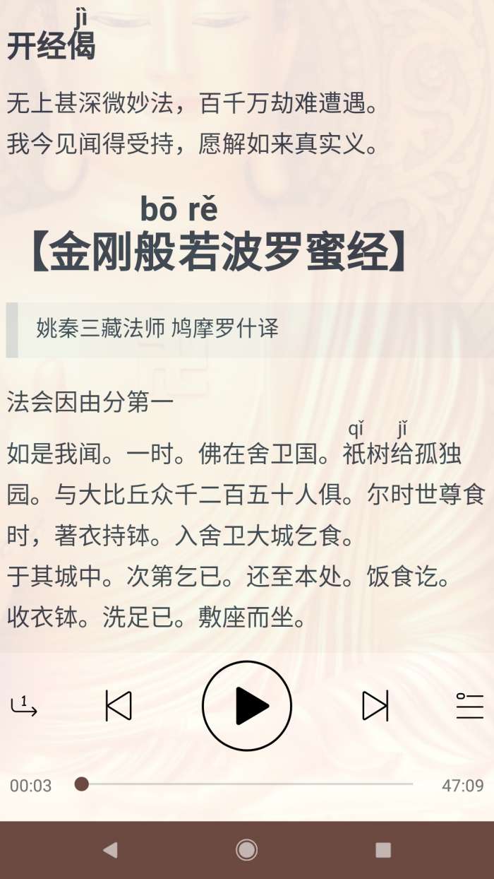 1、在线朗读,您可以进行选择,初学者刚学习的佛经,能够让您在平台上更好地去获得不一样的佛经阅读的体验感受和学习的进展