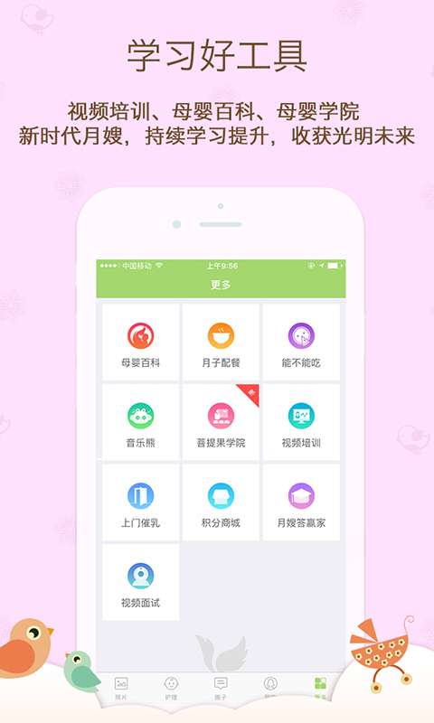 月嫂娘家在这款软件上面是有着许多的资讯是可以很好的去满足广大的用户们让你在你自己的手机上面就可以学习到许多的护理师知识当然还有着护理师的管理功能也是能够让你更好的在手机上面去管理好你自己的订单。上面还有着许多的学习工具可以让你在上面更好的去利用这款APP去持续的提升你自己的学习能力让你可以学习到更多方面的知识,当然还有着母婴百科以及各种各样的视频学院这些都是可以在其中去更好的让你了解到更多的护理师的知识。