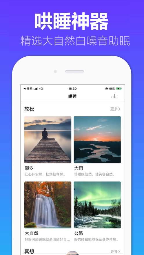 1.选择的类别更多,精心挑选的自然声音,更容易入睡;