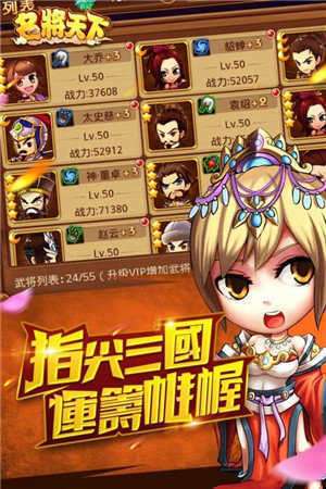 名将天下是一款有着Q版卡通画风的策略战争类游戏,精致的画风让玩家们可以感受到端游的画质,有超多强力三国武将角色可以自由选择培养,丰富的卡牌对战玩法,带给玩家们十足的乐趣,快来下载名将天下试试吧!