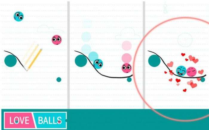 《爱之球安卓版》(Love Balls)是一款画线类休闲闯关手游,游戏中有着两个小球,玩家的任务就是将这两个小球弄到一起,通过画线来形成运行的轨道,或者画线掉落在小球上提供前行的动力,两个小球撞击在一起后会产生爱的火花。
