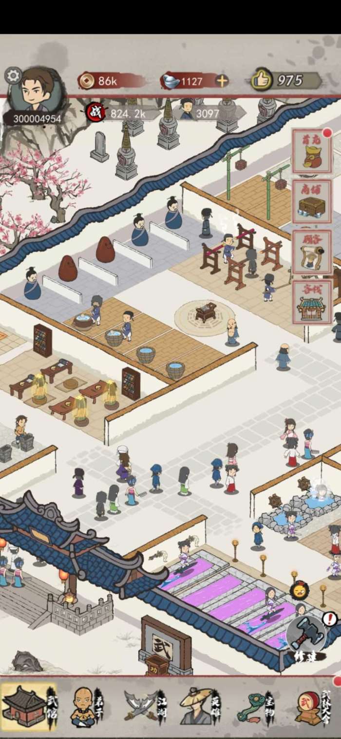 3、卡通国风的精致画面吗,梦回江湖世界,通过经营武馆探索武侠世界。