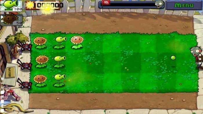 1、这个游戏的主要游戏方式很简单,你的草坪被划分成很多方格,每个方格可以容纳一棵植物。成排的僵尸们朝你家晃悠过来,如果它们突破防线,后果不用说了。