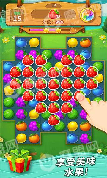 1、滑动屏幕,有3个以上的相同的水果就可以消除;