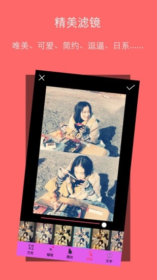 光是这个名字我们就得对得起它!最美P图为你打造最美的照片!让你成为朋友圈的最美女王!简单的文艺唯美式p图,让你的照片告别以往的风格,点亮你的朋友圈!各种工具让你的大师灵感一秒上身,还支持一键分享到朋友圈!