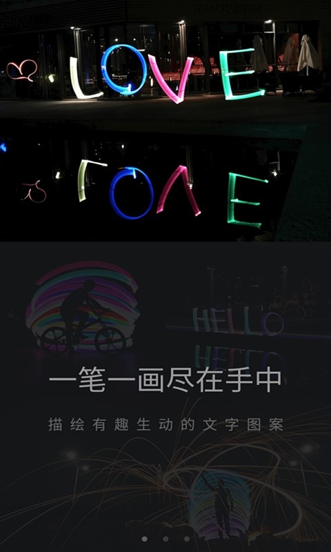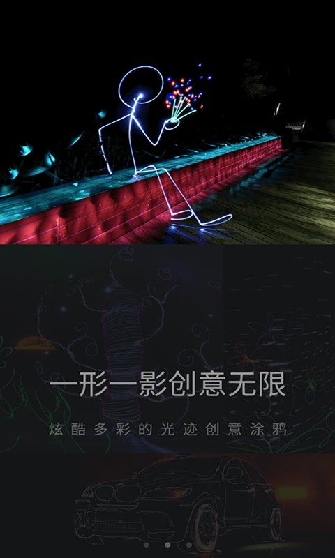 1、一笔一画尽在手中,一形一影创意无限,通过光绘大师相机可以在黑暗环境下记录光影!
