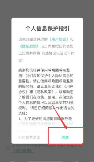 1、确认接受用户协议后,即可进入应用主界面。此操作表明您已经理解了相关说明,并已准备好使用运行状况监视服务。