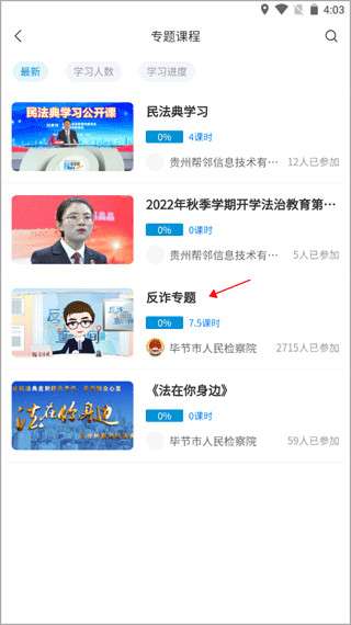 2、这里有最新的专题课程比赛,根据自己的需要选择相应的课程,点进专题内容里面。