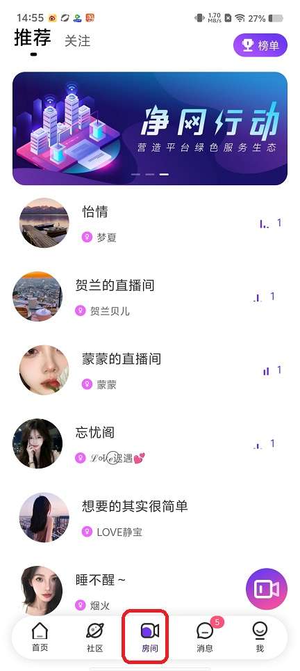 3、房间,创建房间互动。