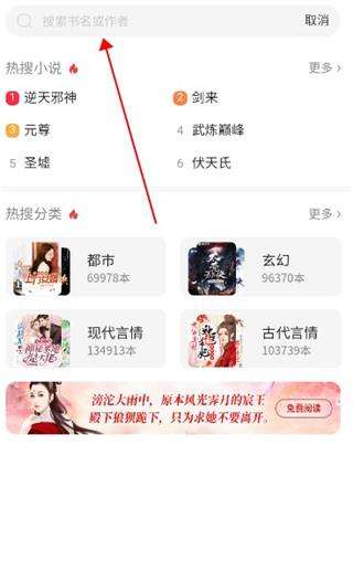 5、在首页上方的搜索栏还有小说搜索功能,输入关键字就可得到自己想要的结果。