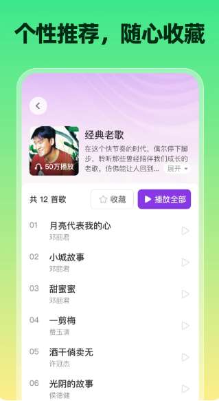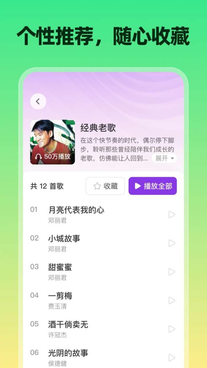 4、精品歌单:聚集千万用户打造歌单发源地,随时获取好音乐。