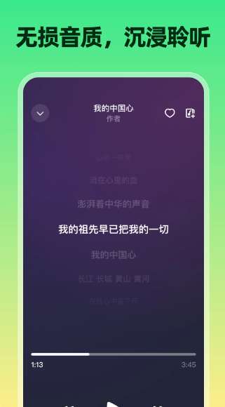 1、歌词显示:逐字歌词、桌面歌词、字句句子更亲切。