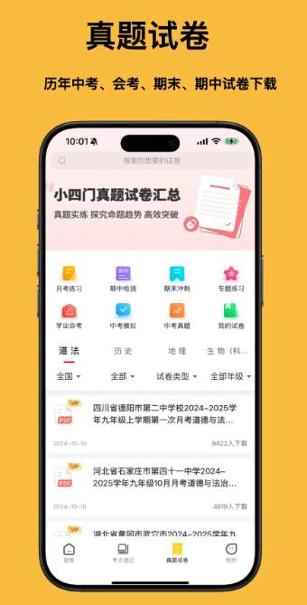 小四门宝典app是一款为用户提供海量题库资源的解题软件。软件为用户整理了大量真实试卷,方便用户随时在线练习和学习。包括月考练习、期中考试、期末冲刺、专题练习、中考实题等多种题库。用户可以过滤和搜索他们需要的真实试卷和考试练习。德法、历史、地理、生物等多学科题库全面覆盖,满足用户多学科的实践需求。并且对各个知识点进行了总结和整理,方便用户快速记忆知识点。