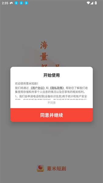 1、在本站下载软件并成功打开进入,点击同意并继续。