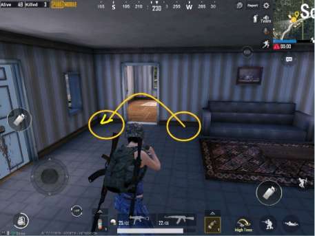如果对面没动作,直接走到右边的门口,小跳到左边门口,击杀小房间的敌人!