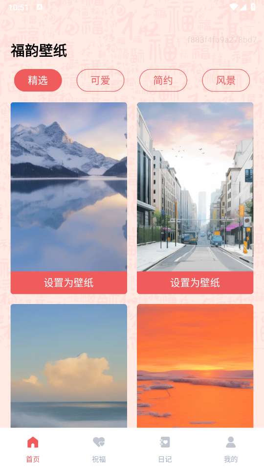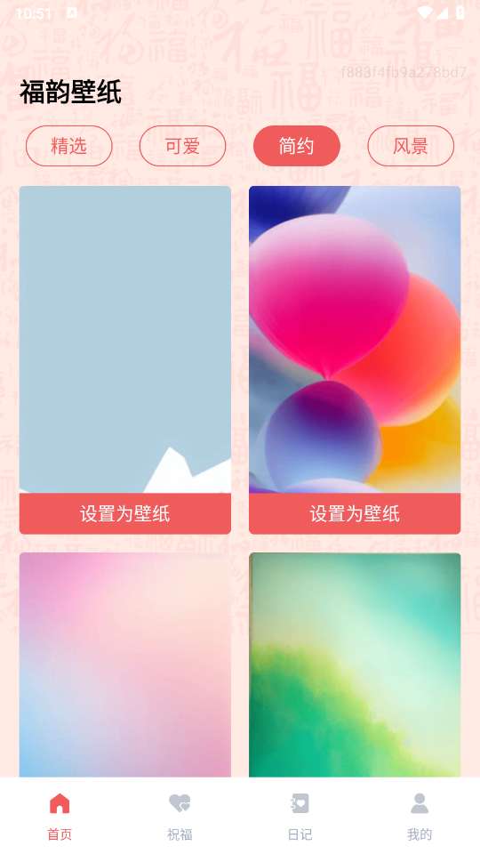 2、进入软件,首页有很多的壁纸资源分类,包括了精选、可爱以及简约等不同的类型。