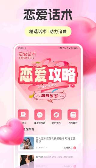 1、功能丰富 可以应用一点功能,进行爱情话术库、爱情教育、爱情摄影制作、实用小工具等。