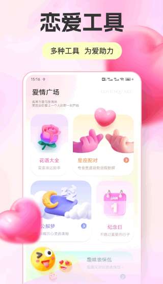 3、实用小工具 可以制作爱情故事图片、下载情侣头像等,有助于用户增加感情表达。