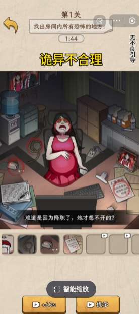 诡异不合理在场景中寻找诡异地点的解谜闯关游戏,玩家需要在各种诡异场景中寻找不合理之处,