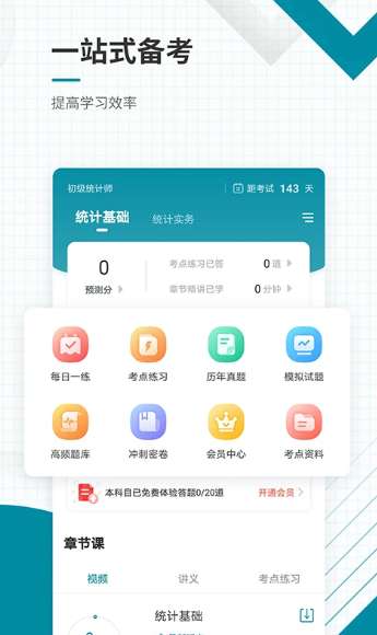 初级统计师准题库是2025年初级统计师考试力荐题库!初级统计师学员考证都在用的备考APP,马上下载去体验!专为初级统计师考试学员精心准备的考试配套题库,内容涵盖:精选题库、强师讲解、章节精讲、高频考点、高频易错、历年真题、冲刺密卷等多个模块,内置全套初级统计师备考试题,模拟实战考试练习,详细解读考点,掌握考试精髓,助你拿证!