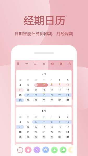 1、精准的周期预测:基于人工智能算法,智能分析历史数据,准确预测下一个月经期、排卵日和预期怀孕期。