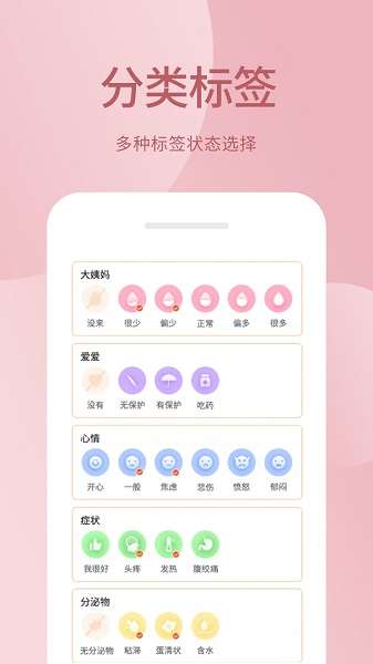 2、多维症状记录:支持记录经血、情绪、腹痛、腹胀、疼痛等20多种生理和情绪指标。