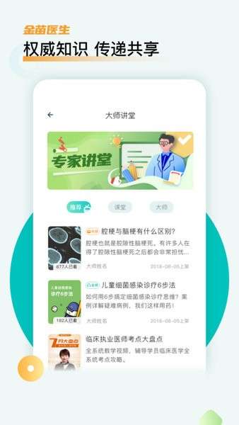 金苗医生是一款全新的医疗问诊咨询软件,可以为用户提供海量医学题库和权威专家课程,随时随地轻松浏览查看,自由学习各种专业知识,还通过A能推荐系统,可以为医生提供个性化学习计划,自由掌握全面的医疗知识,轻松享受优质的学习乐趣,还可以参加模拟考试,巩固自己的专业知识,听取三级医院主任医师的实践经验分享,还设计了智能学习跟踪功能,可以实时分析用户在知识方面的薄弱环节,推送有针对性的练习。