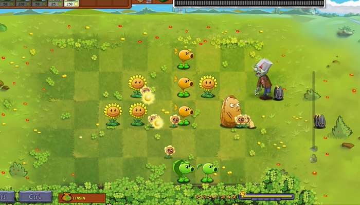 例如,向日葵可以放置在第一排以产生阳光,豌豆射手和坚果墙可以放置在第二排以防御僵尸。