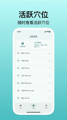 3、当前活跃穴位:随时了解活跃穴位,指导您有针对性地调理身体,保持健康。