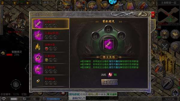 通过洗练宝石来为装备进行洗练,获得并强化装备铭文,可以大幅度增加战斗力。