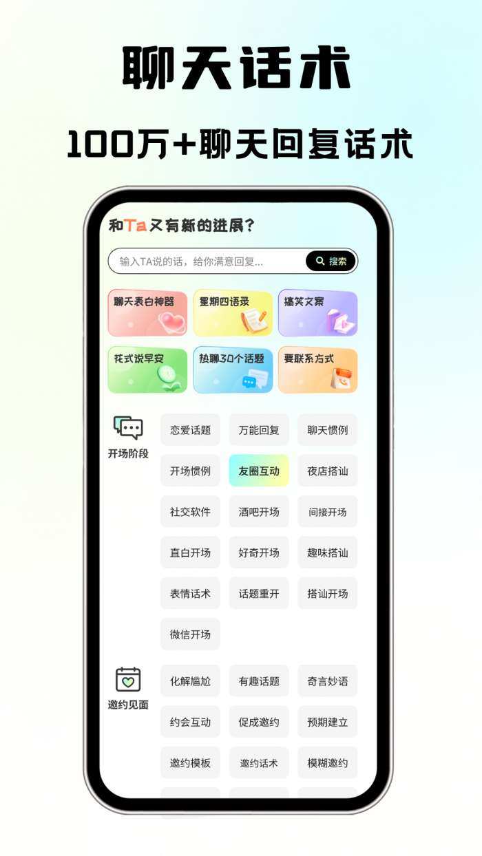 软件提交 专题合集 热门手游很多朋友在聊天的时候不知道应该如何高情商的恢回复别人,今天小编就为大家带来几款能教你一些高情商回复的聊天话术app,涵盖各种丰富的回复语句,你都能任意进行查看,帮助你聊天不冷场,需要的用户不妨来下载试试吧!