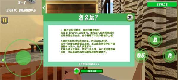 3、被爸爸抓住时扣驶体力值,并出现ONe判会珍脱并使或功判定会脱度弹反进度荷体力减少,进入疲画状市:失败命减少进度条,并减少体力值,体力值旧等游戏失败,可以调谊奶最来家复体力。