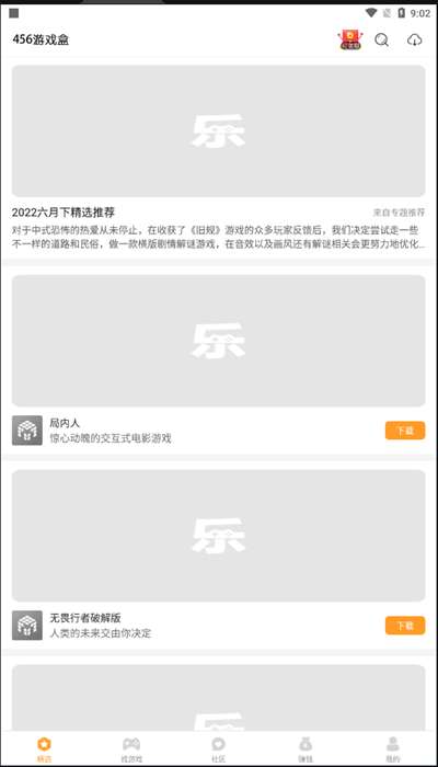 456变态版手游平台是一款受欢迎的免费游戏下载软件,拥有全面的游戏资源可以实时更新,及时呈现很多高人气的游戏,方便用户轻松下载体验,还具有个性化的游戏榜单,可以在里面找到很多热门游戏,随时感受精彩的游戏内容和玩法,还能关注各种游戏攻略,轻松让用户成为游戏大神,能完全满足所有使用需求,还提供在线游戏管理功能,允许用户自由管理各种好玩的游戏,有需要的用户欢迎来本站下载软件吧。