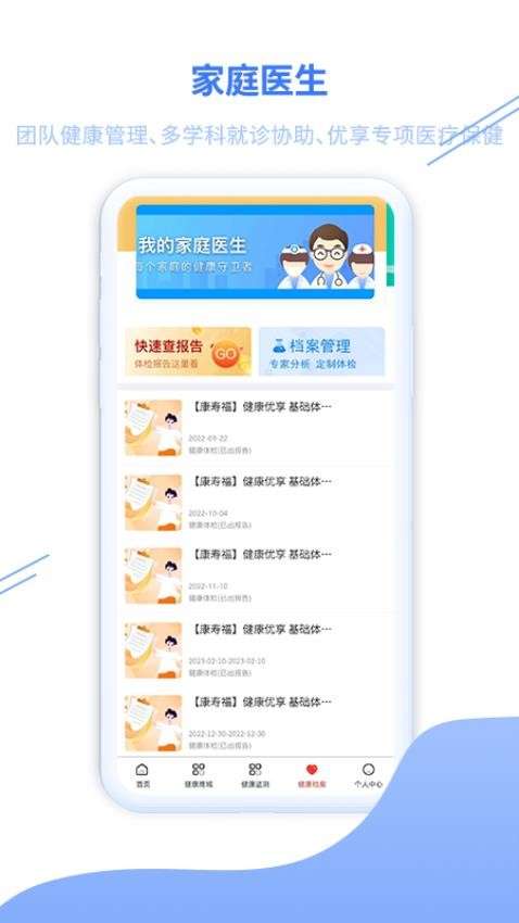5、在家庭医生板块,就能查看报告和管理自己的档案。