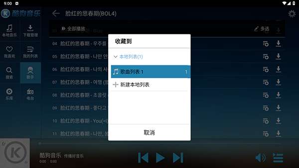 3、为自己的列表取名,否则系统自动默认歌曲列表1。