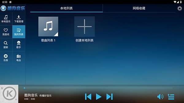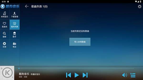 5、可以看到刚创造的列表里是没有任何歌曲的。