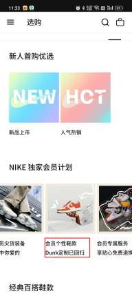 来到软件首页之后,找到新人,然后滑动到下方找到nike会员独家计划,在其中有一个会员定制鞋款,点击